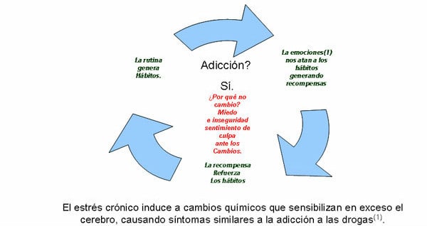 Esquema que muestra como se produce el círculo de adicción al estrés